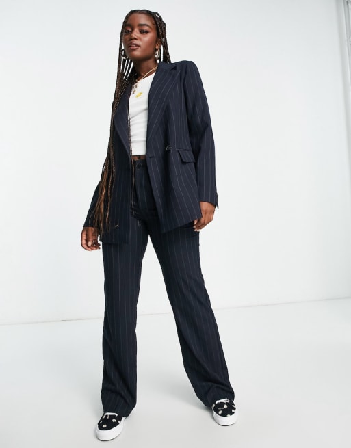 Pull&Bear - Co-ord set met double breasted blazer en broek in marineblauw met krijtstreep