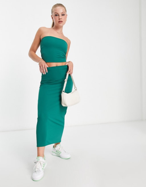 Pull&Bear - Co-ord set van strapless crop top en rok in smaragdgroen