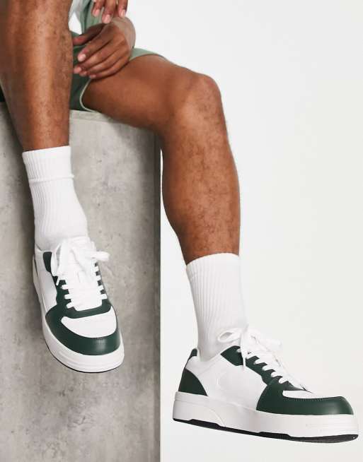 Pull&Bear - Contrasterende sneakers met dikke zool en groene panelen in wit