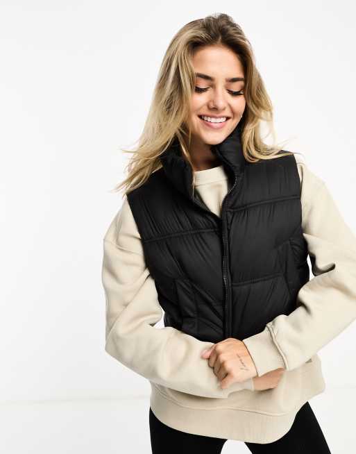 Pull&Bear - Cropped, gewatteerde bodywarmer van nylon met rits in zwart