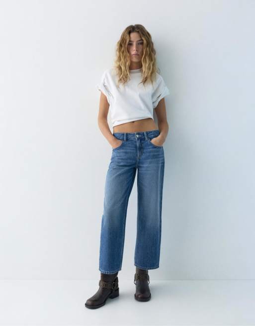 Pull&Bear - Culotte jeans met lage taille in middenblauw