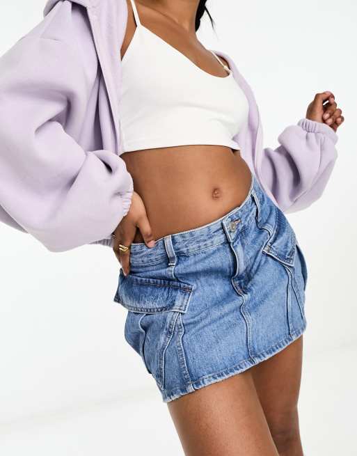 Pull&Bear - Denim cargo mini-rok in blauw