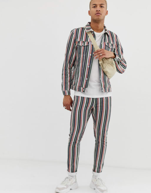 Pull&Bear - Denim combi-set in blauwe strepen