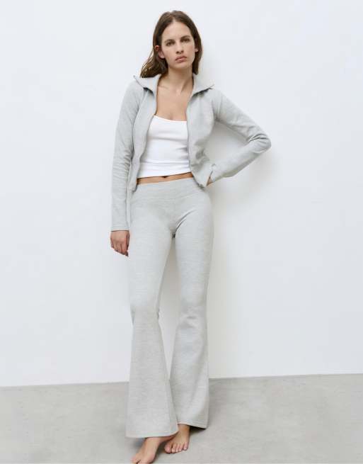 Pull&Bear - Flare-broek met interlocknaden in gemêleerd grijs