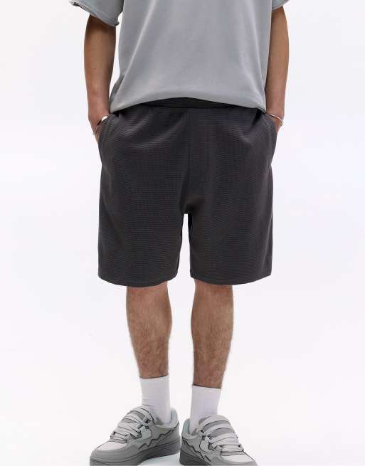 Pull&Bear - Gebreide bermudashort met wafelstructuur in antracietgrijs
