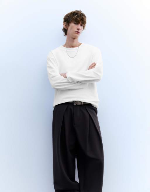 Pull&Bear - Gelaagd T-shirt met lange mouwen in wit
