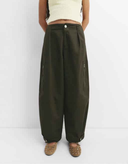 Pull&Bear - Geplooide cargobroek met ballonpijpen in kaki