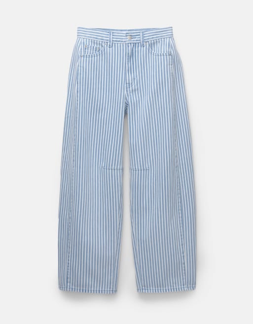 Pull&Bear - Gestreepte jeans met ballonpijpen in blauw