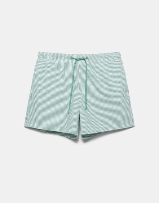 Pull&Bear - Gestreepte zwembroek van seersucker in groen