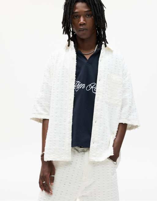 Pull&Bear - Getextureerd overhemd met korte mouwen in gebroken wit