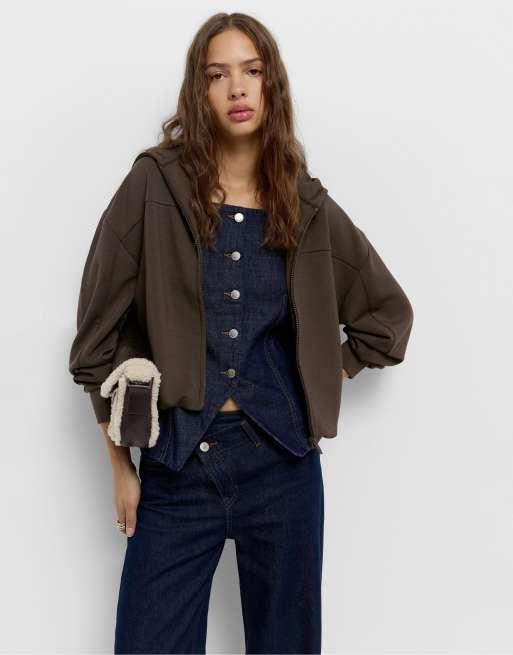 Pull&Bear - Hoodie met ballonpasvorm in bruin
