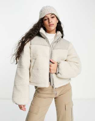 Pull&Bear - Jas van borg met contrasterend detail in beige