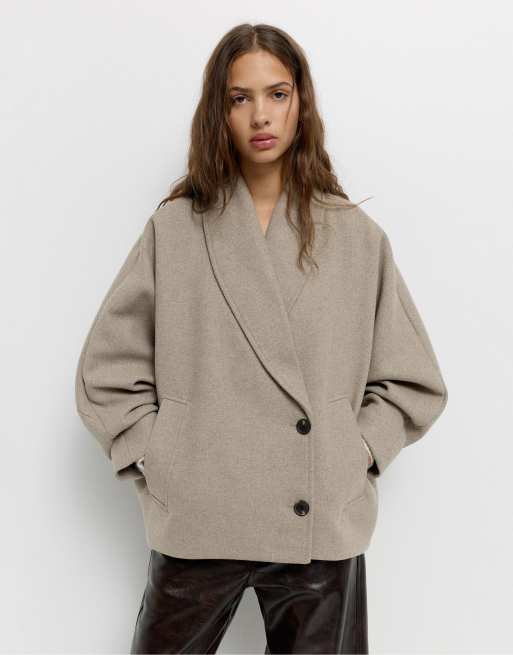Pull&Bear - Jas van stof met volumineuze mouwen in beige