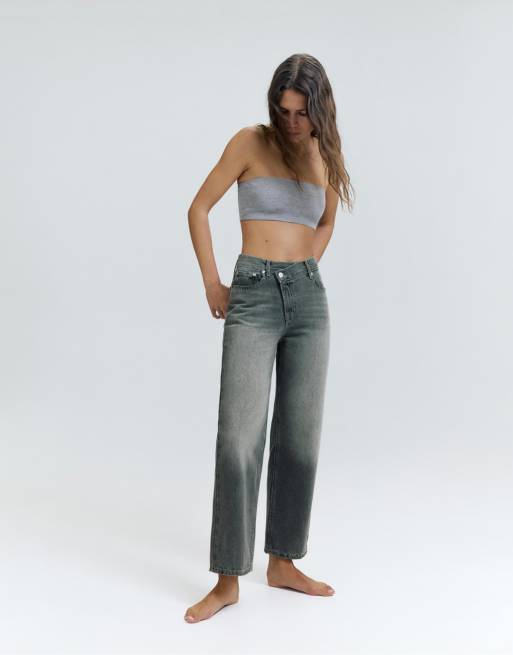 Pull&Bear - Jeans met rechte pijpen en gekruiste tailleband in grijs