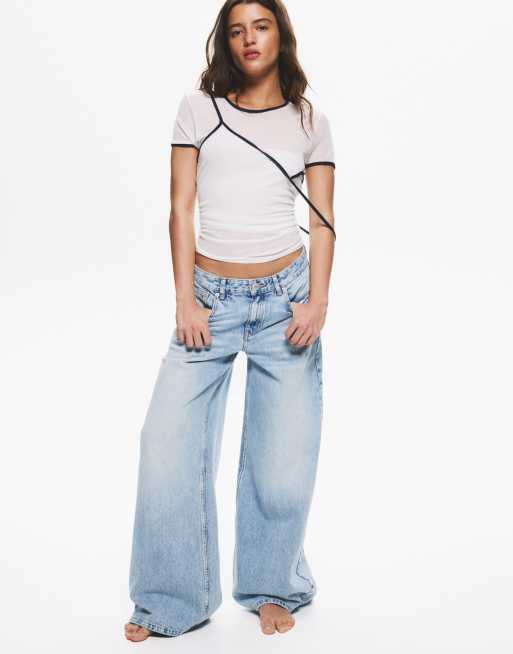Pull&Bear - Jeans met wijde pijpen en lage taille in lichtblauw