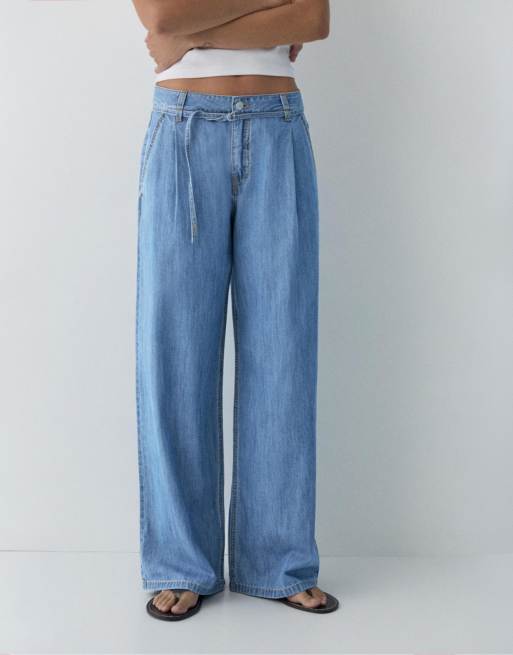 Pull&Bear - Jeans met wijde pijpen en trekkoord in lichtblauw