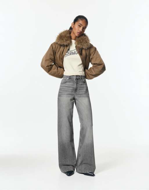 Pull&Bear - Jeans met wijde pijpen in middengrijs