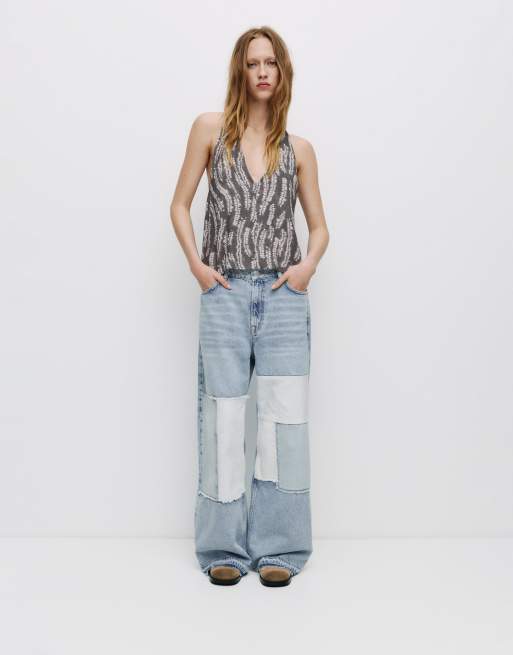 Pull&Bear - Jeans met wit patchwork in lichtblauw