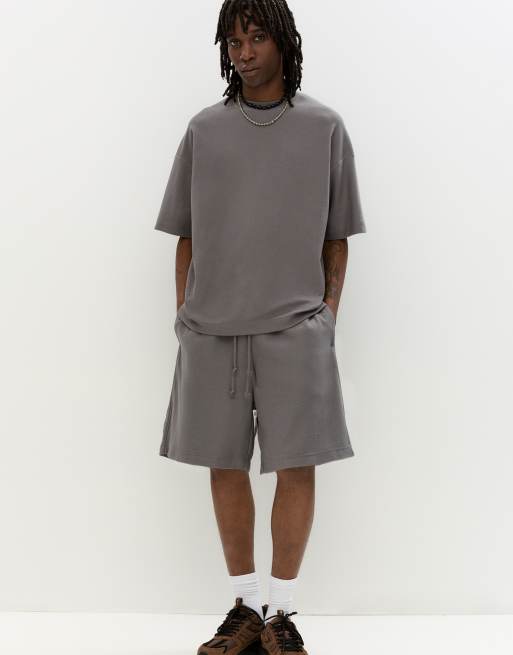 Pull&Bear - Joggingbermuda short met diagonale textuur in grijs