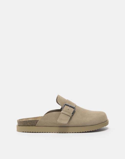 Pull&Bear - Klompen van leer met gesp in zandkleur