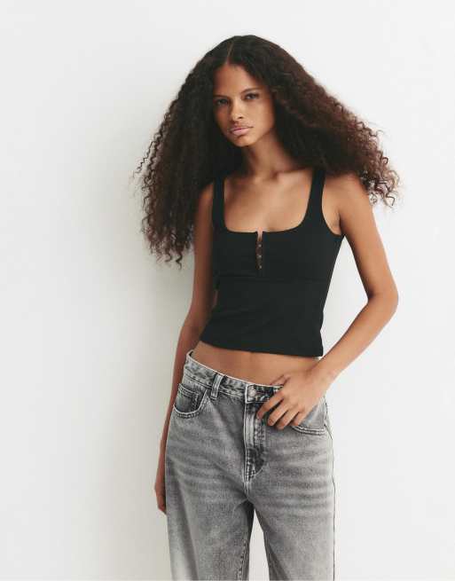 Pull&Bear - Korsettop met bandjes in zwart
