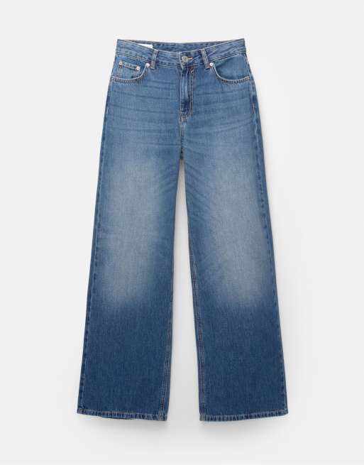 Pull&Bear - Losse oversized jeans in donkerblauw