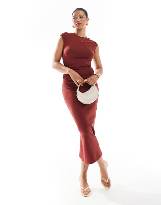 Pull&Bear - Midi-jurk van polyamide met open achterkant in rood
