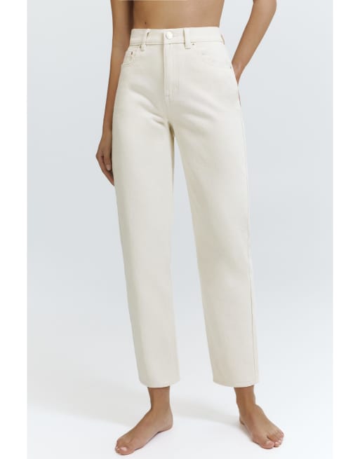 Pull&Bear - Mom-fit jeans met hoge taille in licht ecru
