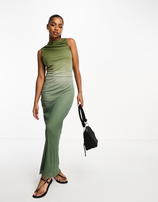 Pull&Bear - Mouwloze maxi jurk van mesh in groene ombre
