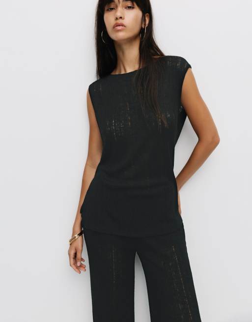 Pull&Bear - Opengebreide top in zwart