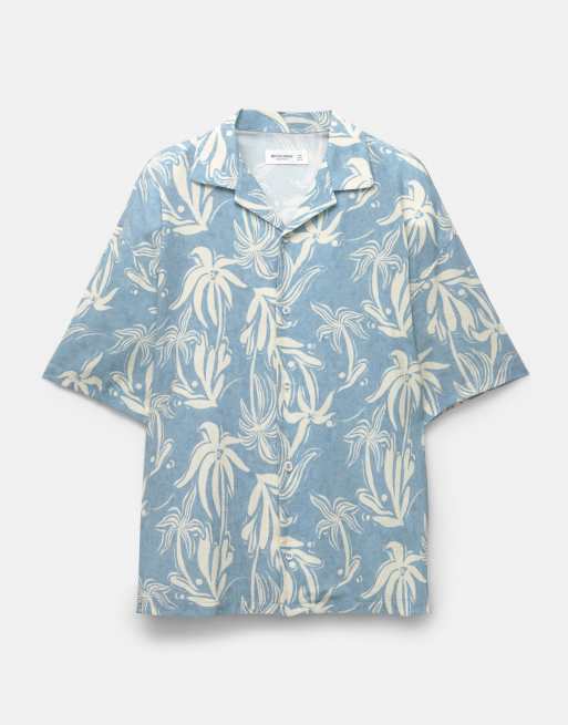 Pull&Bear - Overhemd met korte mouwen en print in blauw