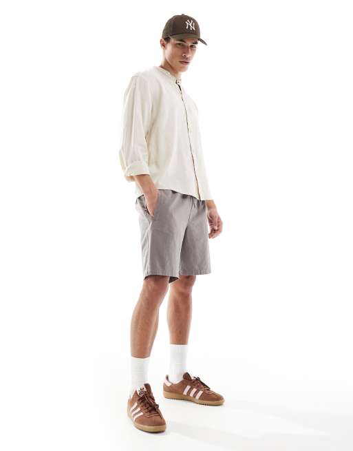 Pull&Bear - Overhemd van linnenmix zonder kraag met lange mouwen en textuur in beige