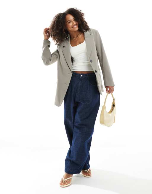 Pull&Bear - Oversized co-ord set met blazer en pantalon in zandkleur