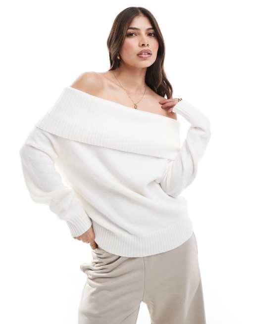 Pull&Bear - Oversized gebreide bardot-trui in ecru