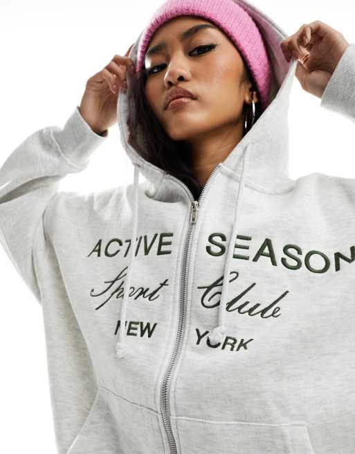 Pull&Bear - Oversized hoodie met rits en 'Active Season' print in gemêleerd grijs, deel van co-ord set