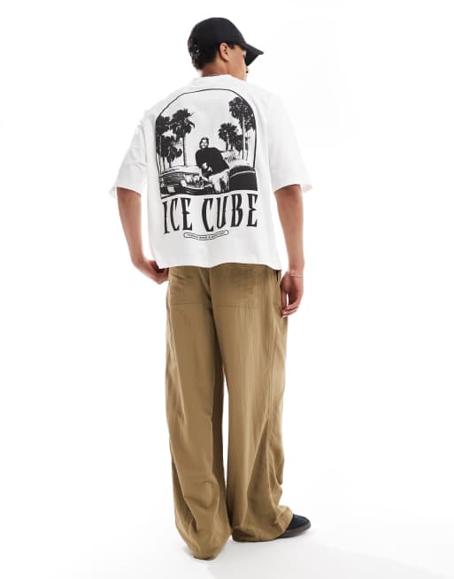 Pull&Bear - Oversized T-shirt met ijsklontprint op de rug in wit