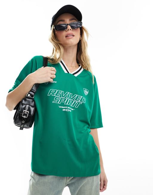 Pull&Bear - Oversized voetbalshirt met grafische voetbalprint in groen