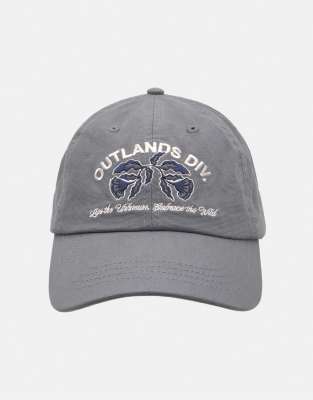 Pull&Bear - Pet met 'Outlands Div'-print in grijs/blauw