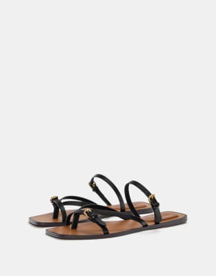 Pull&Bear - Platte sandalen met smalle bandjes in zwart