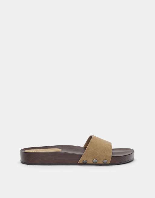 Pull&Bear - Platte sandalen van leer in bruin