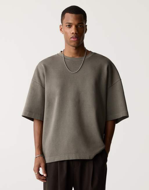 Pull&Bear - Premium - Recht T-shirt in grijs