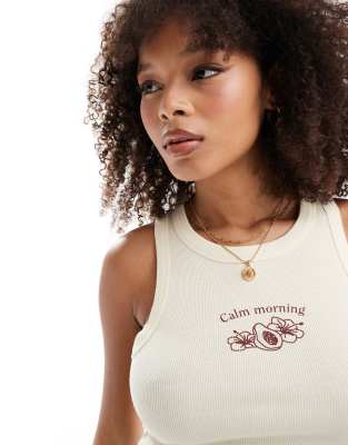 Pull&Bear - Racerhemdje met grafische papaja-fruitprint in ecru
