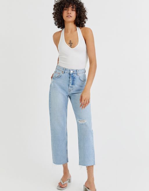 Pull&Bear - Rechte cropped jeans in lichtblauw