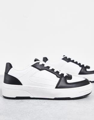 Pull&Bear - Retro sneakers met dikke zool in wit met zwart contrast
