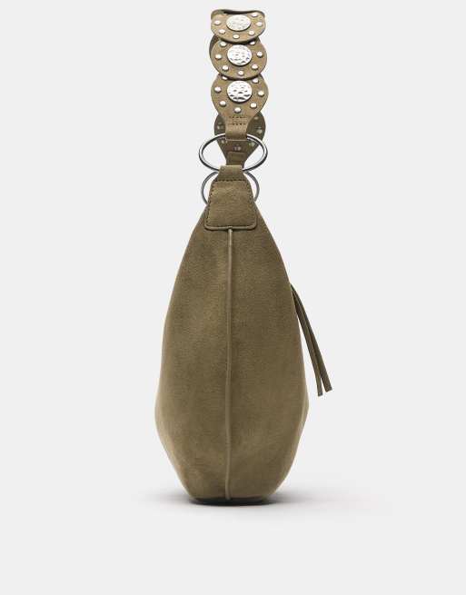 Pull&Bear - Schoudertas met studs in kaki