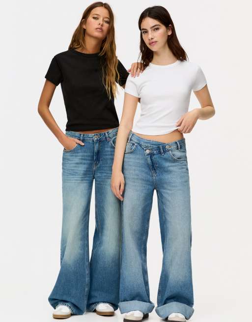 Pull&Bear - Set van 2 aansluitende T-shirts in zwart en wit