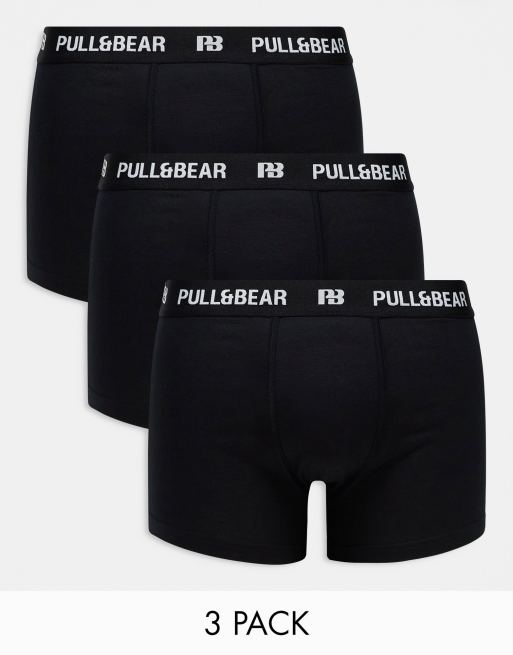 Pull&Bear - Set van 3 boxershorts met witte contrasterende tailleband in zwart