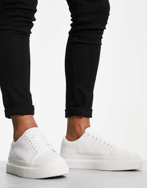 Pull&Bear - Sneakers met veters en dikke zool in wit