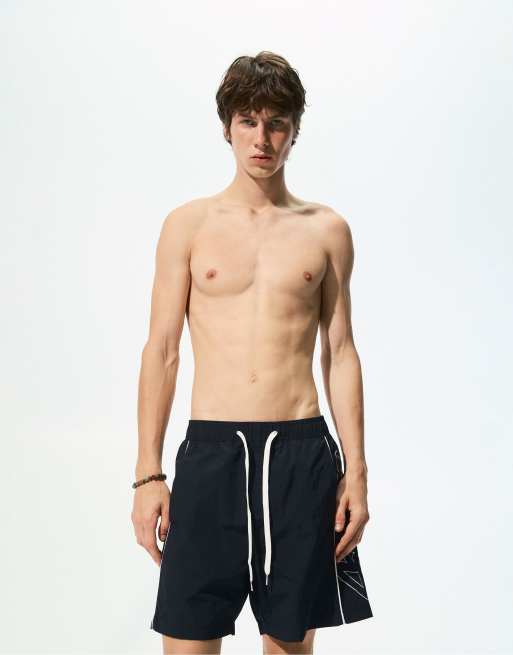 Pull&Bear - STWD - Surfshorts met strepen aan de zijkant in zwart