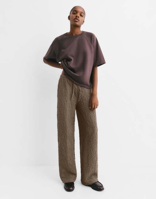 Pull&Bear - Sweatpants met kreukeffect en wijde pijpen in oker